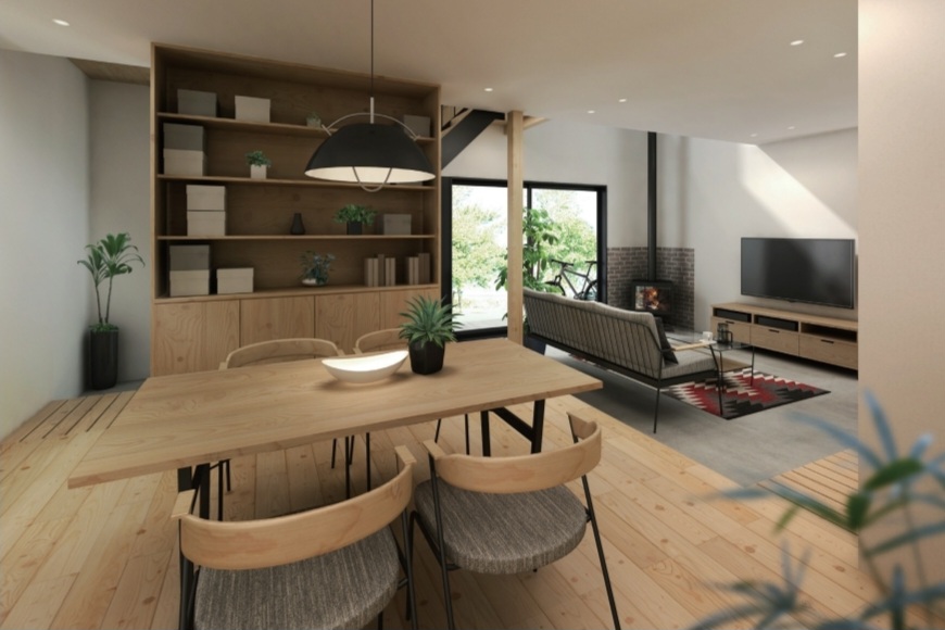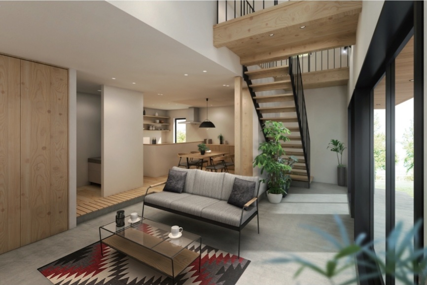 多様な用途に使える土間を室内空間へ取り入れたプランです。