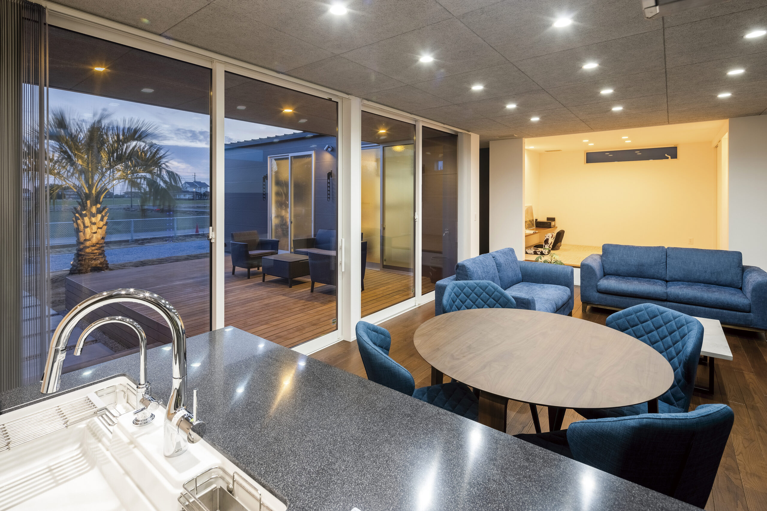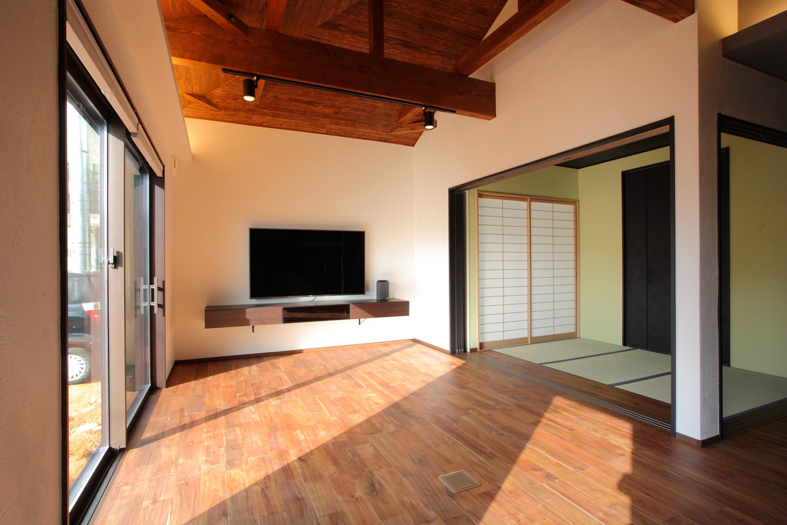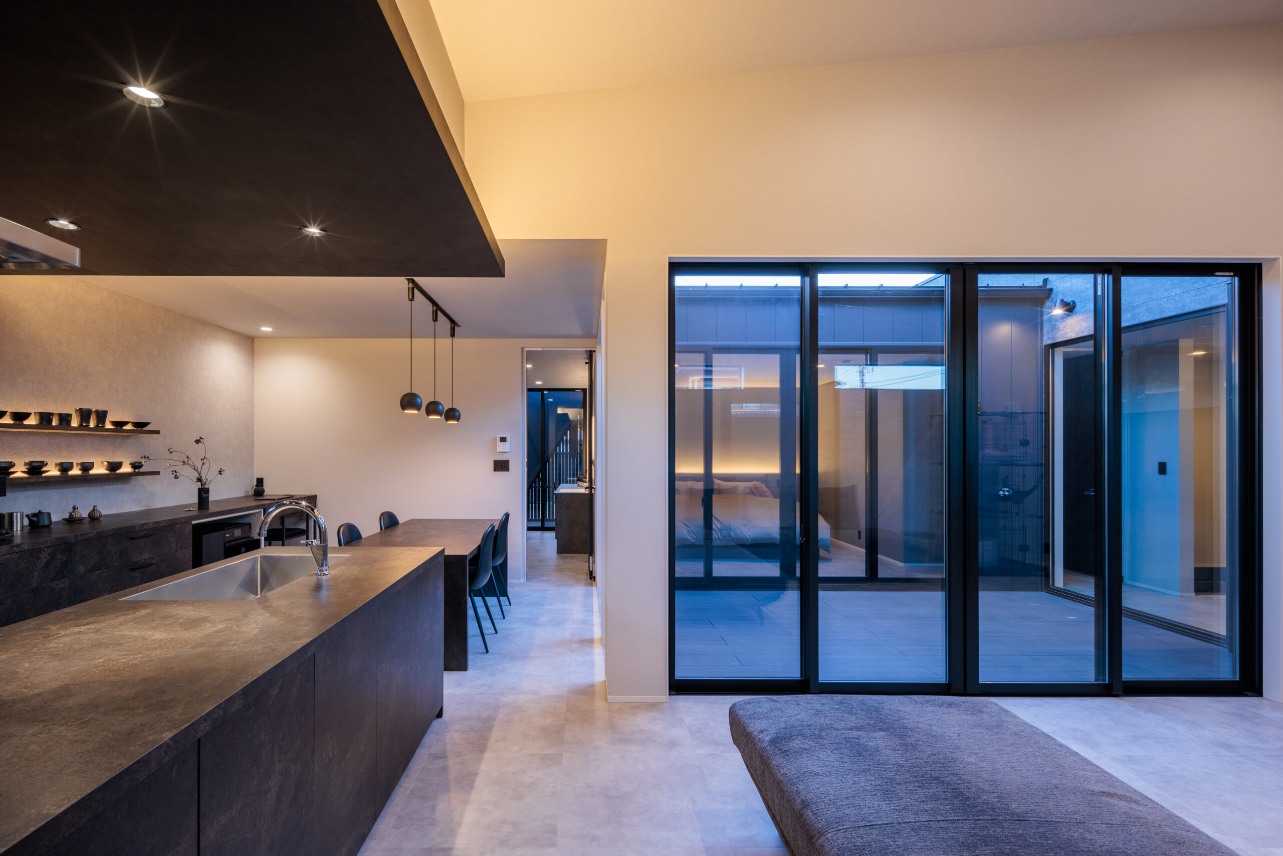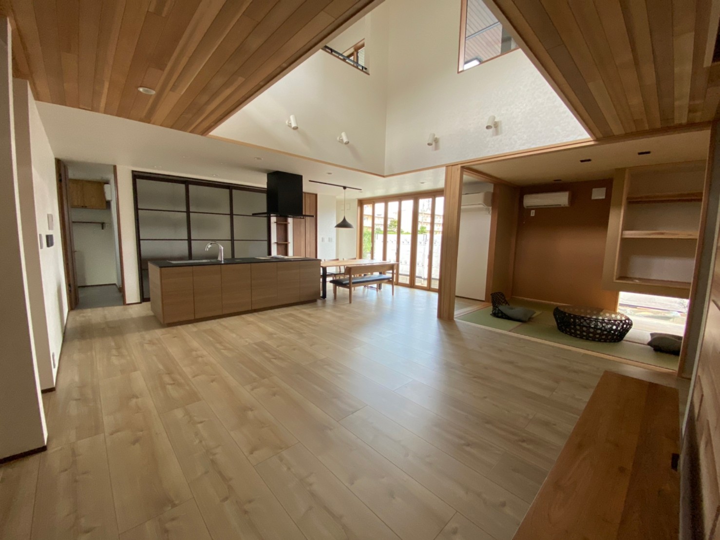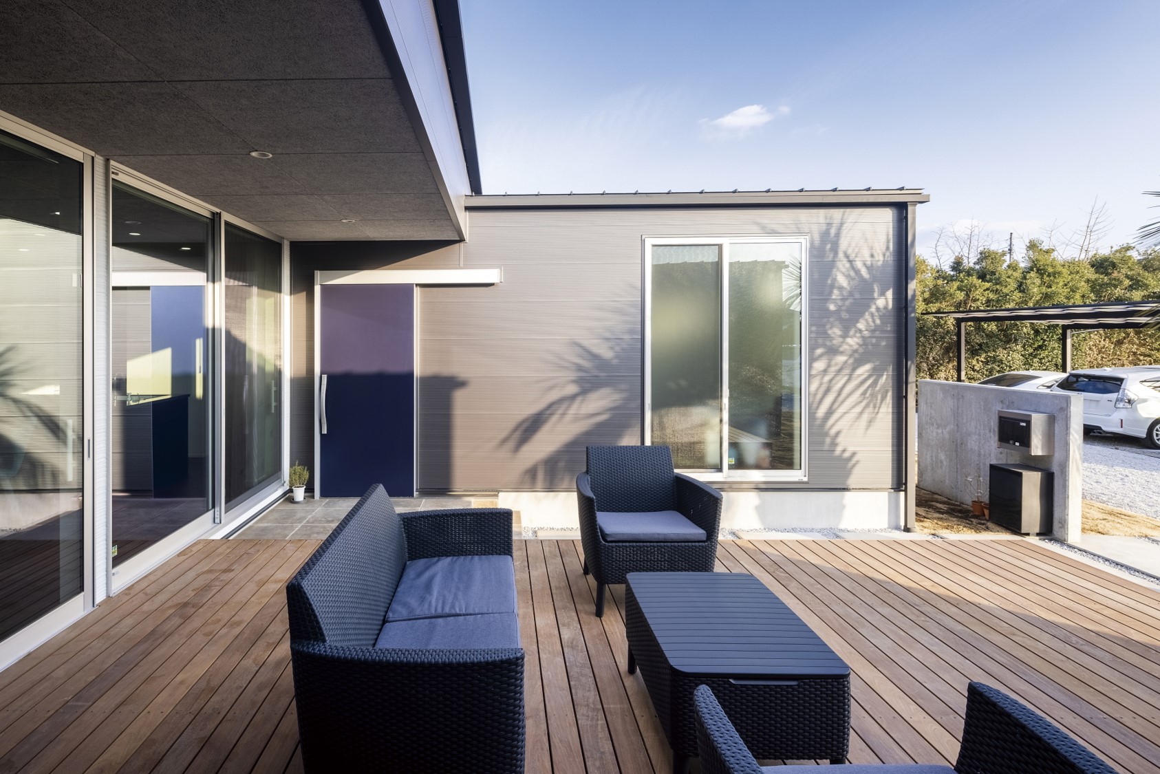 周辺環境を気にすることなく屋外を一体化できるスタイルの家です。