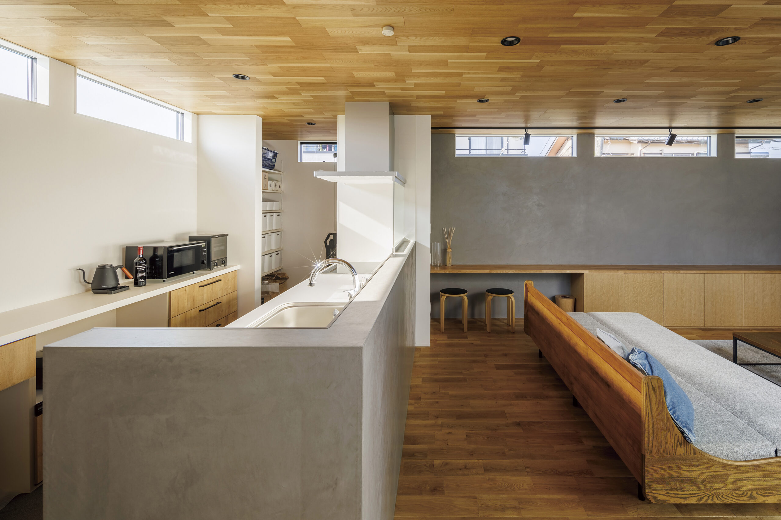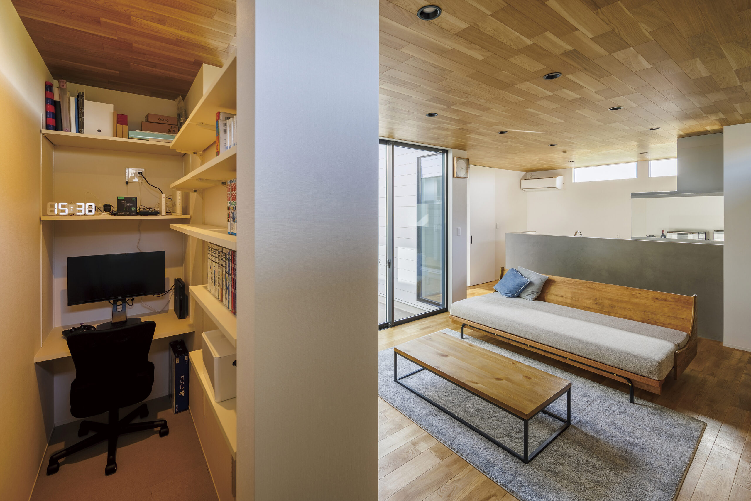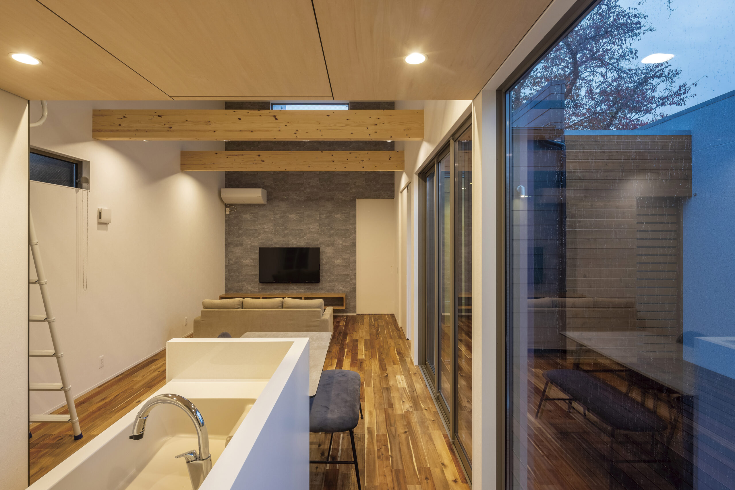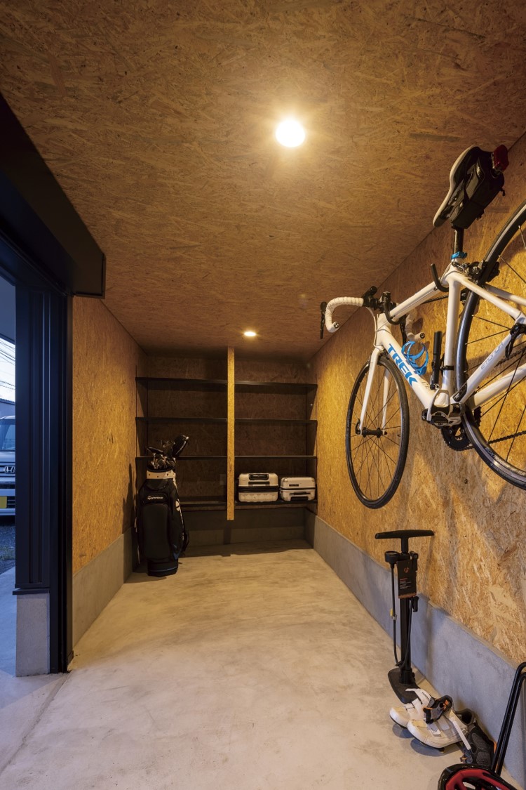 アウトドア用品などの収納・メンテナンスにもうってつけの、趣味と生活が交わるフレキシブルなスタイルの家です。